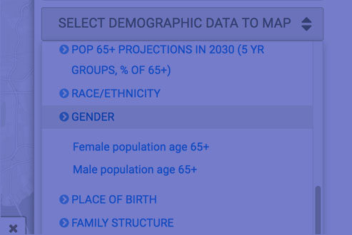 - On the top right corner, click the down arrow on “Select Demographic Data to Map”