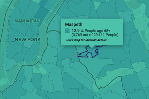 IMAGE:NYC, the interactive map of aging, is an open-source, interactive map of New York City’s current and projected population aged 65 and older with overlays of resources, services, and amenities, by neighborhood.